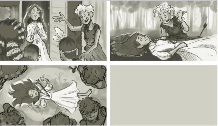 After Wendy’s shot down by a lost boy and proves to be alright, Peter Pan’s worry is quickly replaced with his priorities: “You have to hurry up and feel better, we need to see the Mermaids!” This piece was created for a children’s book illustration assignment in college, conveying emotions, storytelling, and rendering. I focused on framing the characters through the trees and harmonizing color.